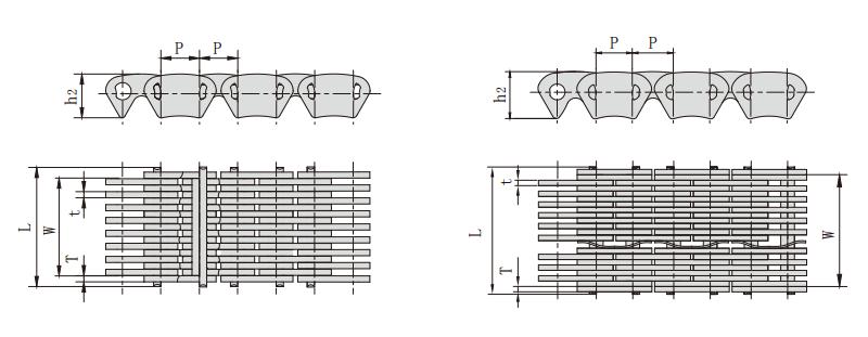 鏈條型號 節距 鏈寬 銷軸長度 鏈板高度 鏈板厚度 導向形式 片數 抗拉強度 每米長重
