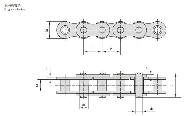 摩托車鏈條主要型號有:節距,滾子直徑,內節內寬,銷軸直徑,銷軸長度,內鏈板高度,鏈板厚度,抗拉強度,平均抗拉強度,每米長重