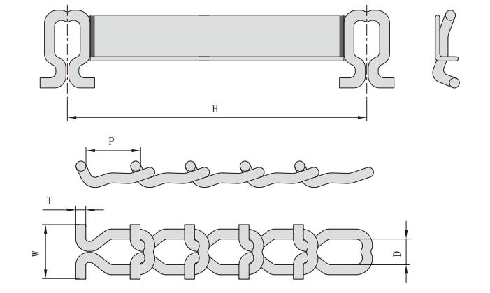鏈號(hào) 節(jié)距 鏈節(jié)內(nèi)寬 鏈節(jié)全寬 鏈節(jié)厚度 鏈條中心厚度 平均抗拉強(qiáng)度