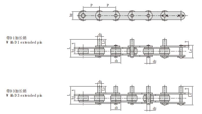 P31.75F9-D1_帶加長銷輸送鏈 輸送鏈條
