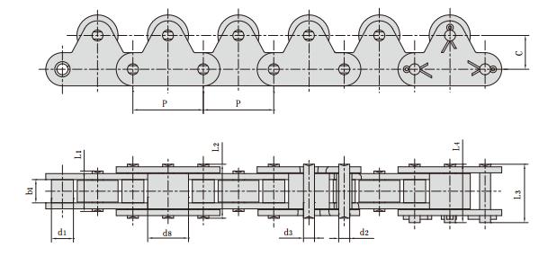 C2080-1LTR_帶頂滾輪雙節距輸送鏈